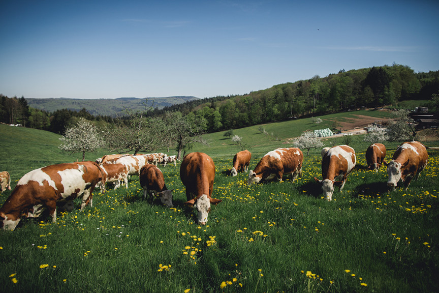 Der Schmiederhof liegt am Rand des Langenhard und wenige Minuten von Lahr entfernt. Seit 1997 führen Bernd und Sabine Schmieder gemeinsam mit ihren Kindern Jonas und Helena den Familienbetrieb. Die Rinder stehen in Mutterkuhhaltung auf weiten Wiesen. So wächst das Fleisch langsam heran und Sie erhalten Produkte mit nachvollziehbarer Herkunft.